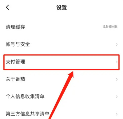 2. 来到设置页面后,找到“支付管理”这一项,并在上面点击进入。