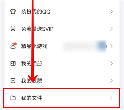 2. 这时会弹出一个功能菜单界面,在里面的下方部分找到“我的文件”,并在它的上面点**开。