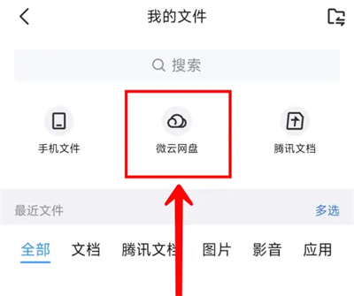 3. 进入到我的文件界面后,在上方选项里有一个“微云网盘”,在这一项上面点击选择。