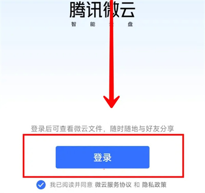 4. 接下来跳转进入到登录腾讯微云的界面里,在底部的服务协议前面点击小圆圈进行勾选,并点击“登录”按钮即可进入到微云网盘里查看文件。