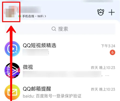 1. 首先点击打开手机中的QQ软件进入界面后,在左上角位置点击个人头像进入。