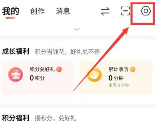 1、打开喜马拉雅FM,点击右上角设置图标。