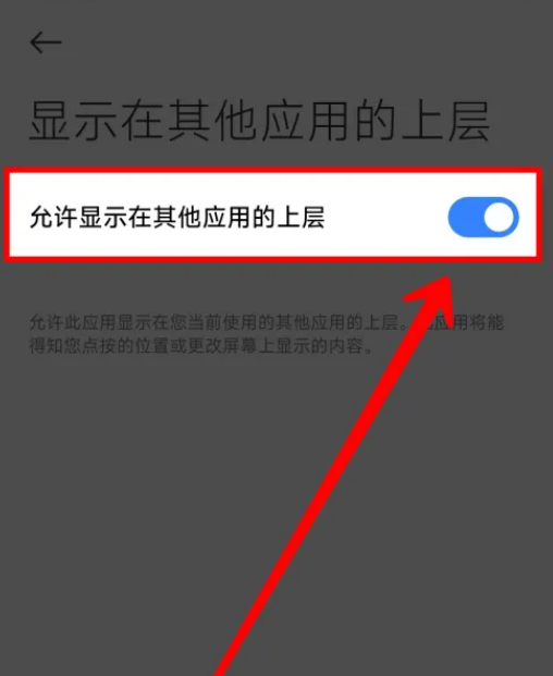 6、找到允许显示在其他应用的上层,开启右侧开关即可。