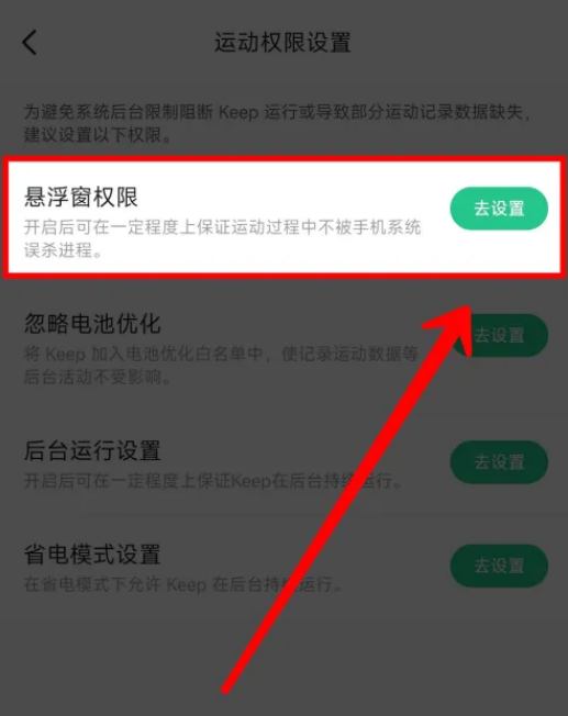4、点击运动权限设置。