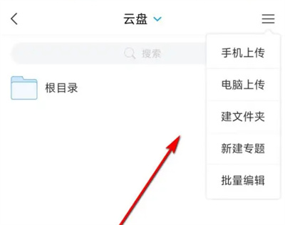 2. 来到云盘界面后,在右上方有一个“三条横线”的图标,在上面点**开。
