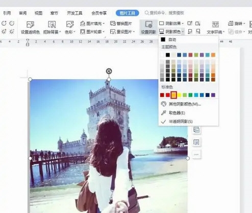 3、在“阴影颜色”下拉菜单中,选择要设置的阴影颜色。