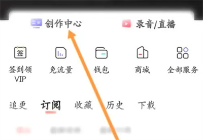 2. 在创作**页面里“常用服务”下方的选项中点击“我的”进入。