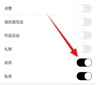 3.接下来,在进入的页面“推送设置”下方选项里就能找到“动态”。在它的后面点击对应的开关按钮,把按钮设置为彩色状态即可开启,继续使用诗音软件时就可以为我们推送动态消息通知。