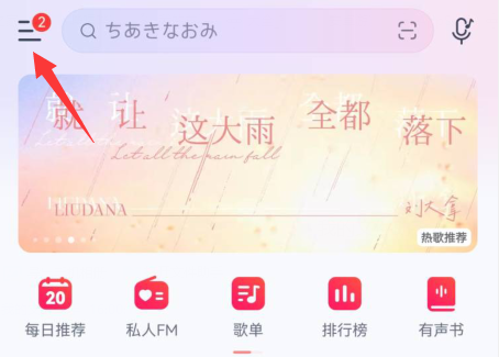 1、首先点击打开网易云音乐,点击左上角的三个点。