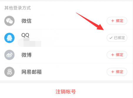 4、随后在这里能够看到qq后面的“已绑定”,点击。