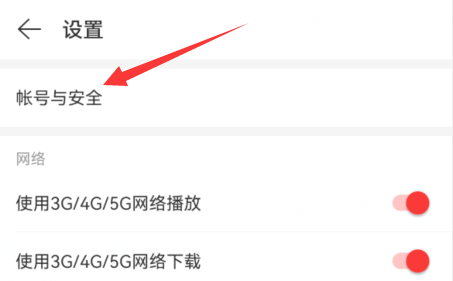 3、接着我们能够看到设置中的“账号与安全”,点击进入。