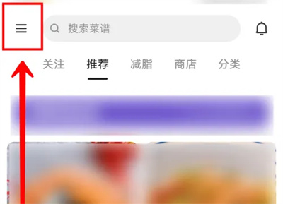 1. 点击打开手机中的下厨房APP进入界面后,在左上角点击三条横线的图标打开。