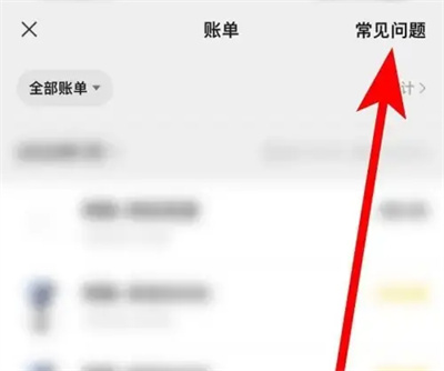 4.我们继续在账单页面的右上方点击“常见问题”进入。