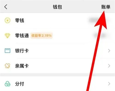 3.接着在钱包界面右上方有一个“账单”,点**开。