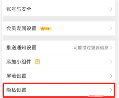 2. 来到设置界面后,在其中找到“隐私设置”,并在它的上面点击进入。
