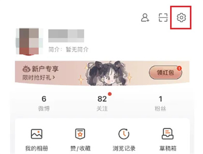 1. 首先点击打开手机微博进入界面后,在右下角点击“我”进入到个人**界面里,再在右上角点击一个齿轮形状的图标打开。