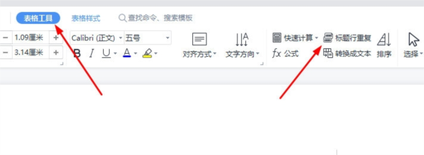 依次点击「表格工具」选项卡 --->「标题行重复」按钮。