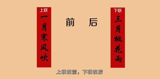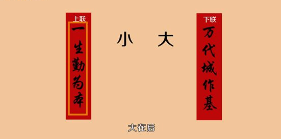 4、三是按事情的大小分。大在后,小在后,先有家后谈国,所以范围小的是上联。