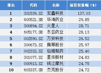 4月,浙江省所有上市公司中,华海药业涨幅**,火星人和东亚药业分列二、三位。具体涨幅情况如下: