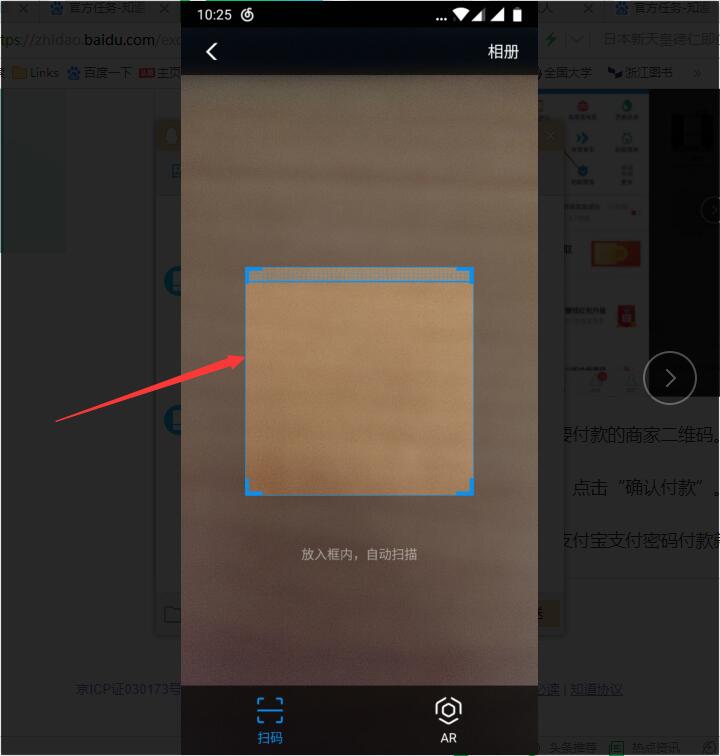 3、然后进入到扫码页面中,使用扫码框扫描需要付款的二维码。
