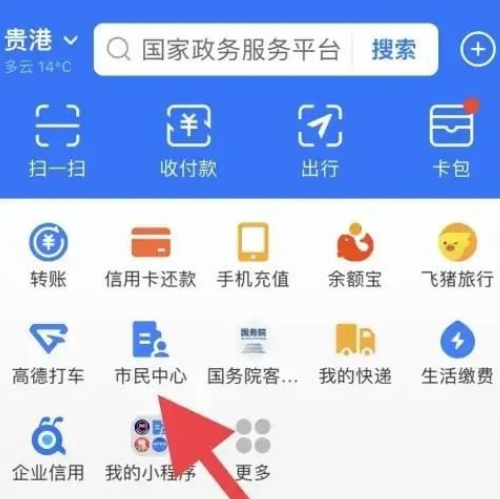 步骤一,打开支付宝APP,点击首页的市民**。