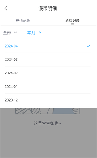 6、同时我们还可以点击【消费记录】看充值的漫币具体花费到了哪里。