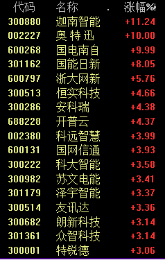 今天上午,虚拟电厂板块大涨,迦南智能涨超11%,奥特迅涨停。