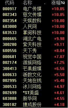 今天上午,传媒板块大涨,电广传媒、天娱数科等个股涨停。