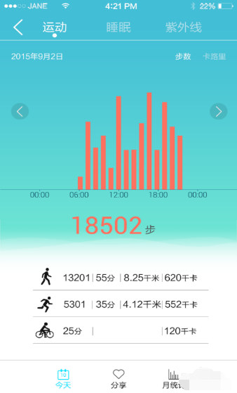 2、并记录走路和跑步的步数和时间,记录骑行的时间,估算出所燃烧的卡路里。