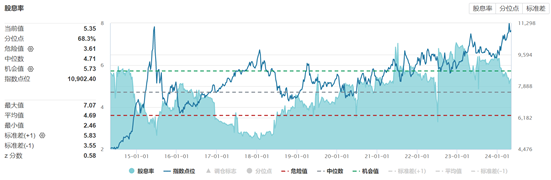 以中证红利低波动指数(代码:H30269)为例,指数当前股息率为5.35%,仍处于近十年**水平之上,就该指标而言,仍然具备较好的投资性价比。