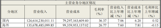 2023年,海尔智家**、海外市场分别实现营收1246.14亿元和1356.78亿元,占总收入的比重为48%和52%。