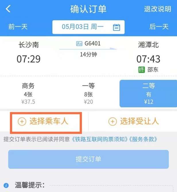 3、选择乘车人。