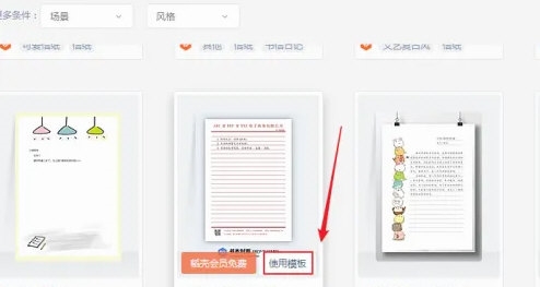 5、在打开的书信信笺页面中,选择经典纯色简约线条恩游商务信笺模板,点击右侧的使用模板则可成功使用。