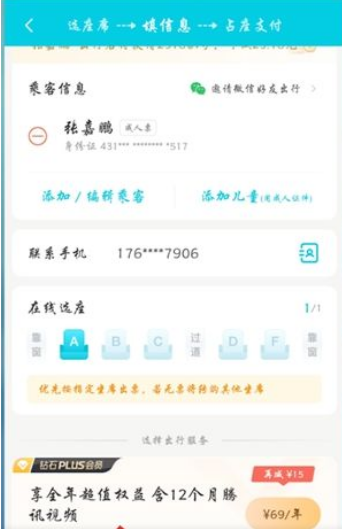 2、在支付页面,找到在线选座,选择喜欢的座位即可。