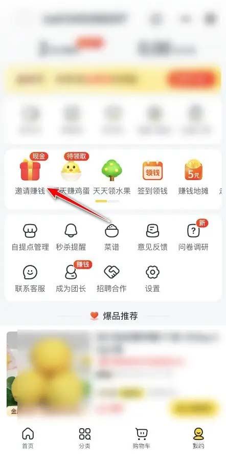1、进入美团优选我的界面,点击进入邀请赚钱。