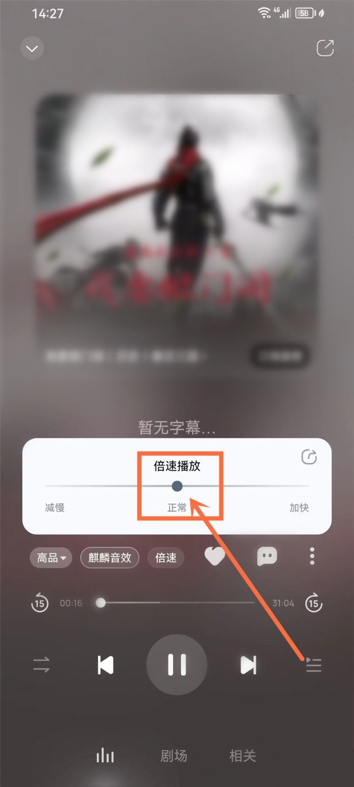 拖动滑块选择倍速,即可设置倍速播放。