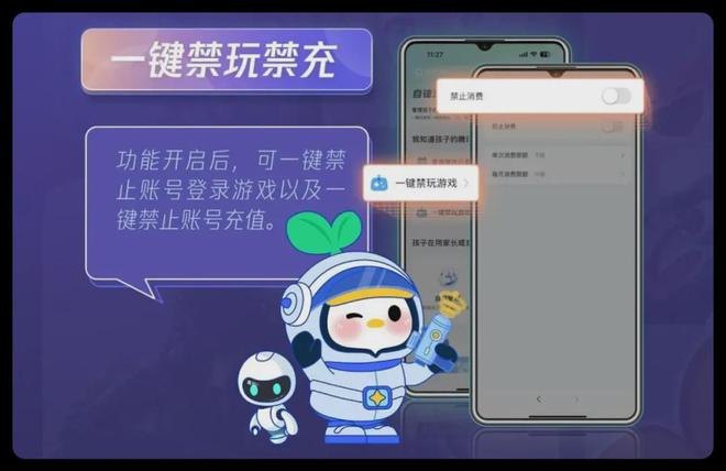 其中,「一键禁玩禁充」功能开启后,可禁止孩子账号登录游戏以及一切充值活动。