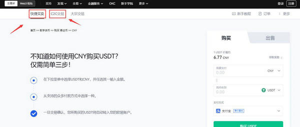 1.我们以欧易交易所为例,进入欧易官网,如果你没有账号,可以注册新账号,在其首页页面点击买币,我们就可以进入买币的页面,在这一页面,我们也能够出售USDT。