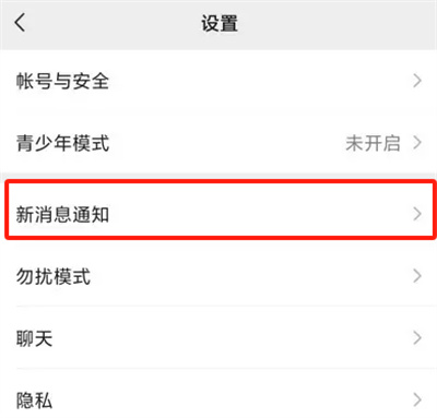 2.然后来到设置页面后找到“新消息通知”,点**开。
