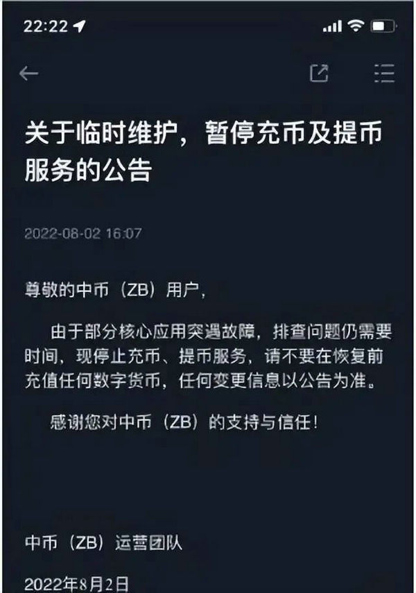 对于中币跑路网上的传言,其实中币真的跑路了,在2022年8月2号的时候,中币的官网突然发布故障说明,暂时将会不能进行充币还有提币服务,那么对于这些网上的言论,中币网到底有没有跑路呢,下面小编就带领大家来看一看详细的解释说明,感兴趣的小伙伴可以看看!