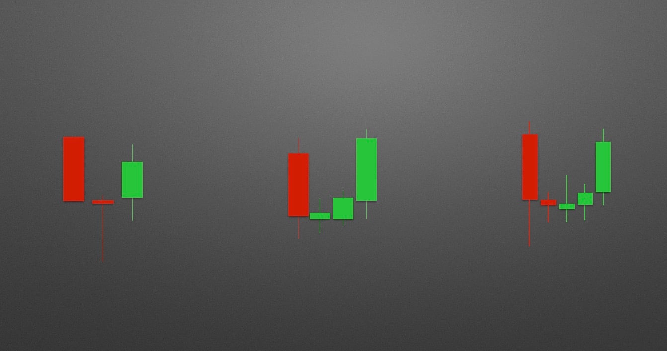 刚刚所讲,是最标准的启明之星组合,但在实际的走势中,启明之星会有一些变化。那么市场中真实的启明之星是怎么样的呢?