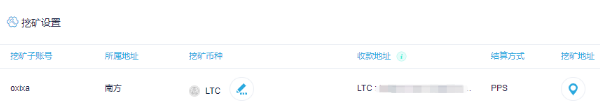注意:挖矿地址一旦选择完成后,不可更改,账号下矿机都只可以连接此区域。挖矿币种:选择 LTC。
