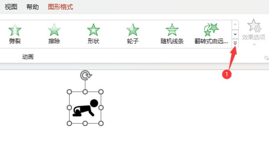 2、然后选中【图标】,点击【动画】菜单,点击【更多设置】。