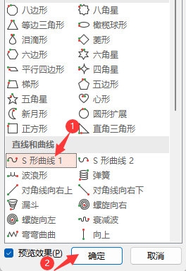 4、弹出【更改动作路径】,点击【S形曲线1】设置,点击【确定】。