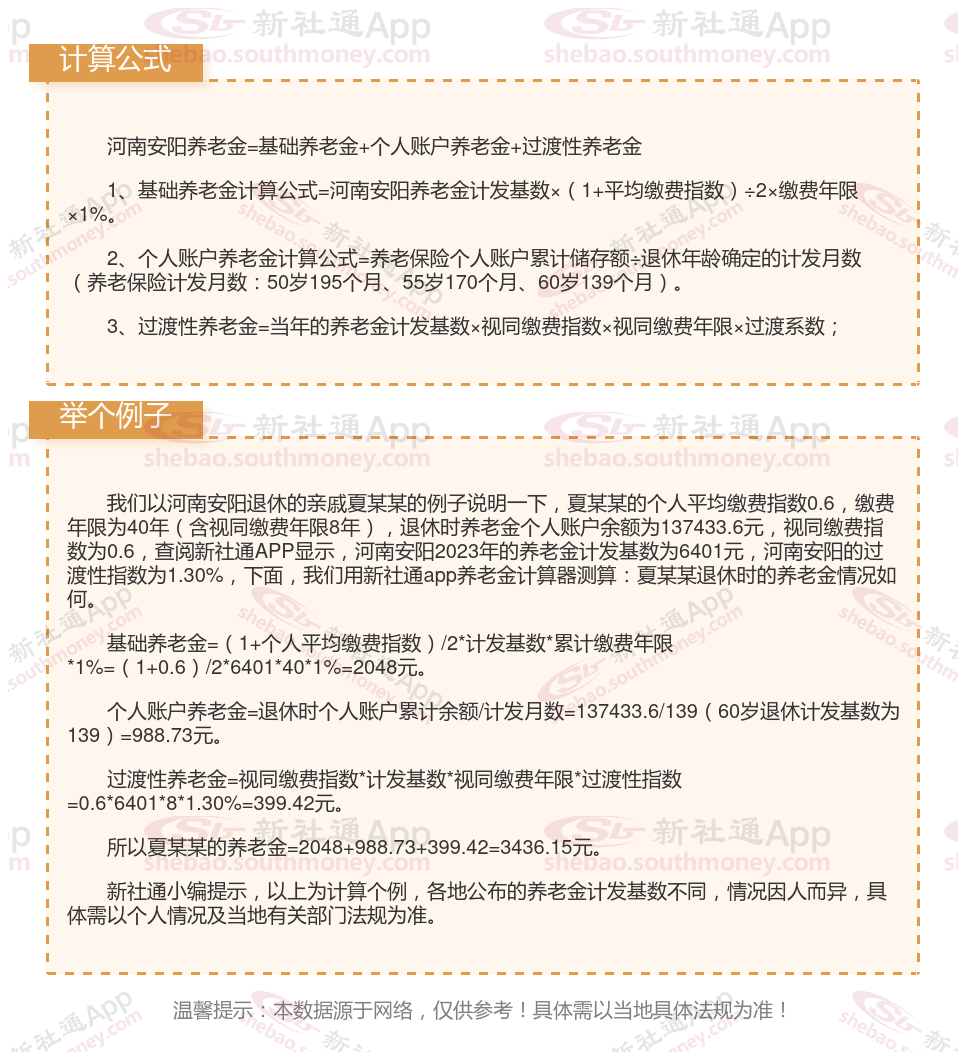 河南安阳养老金计算公式2024年计算方法(在线计算器)