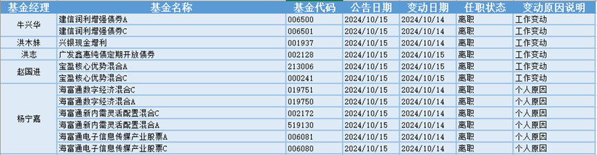 根据巨灵统计的数据显示,近30天(9.16-10.15)共有444只基金产品的基金经理发生离职变动,其中今天(10.15)有12只基金产品发布基金经理离职公告,从变动原因上来看,有4位基金经理是由于工作变动而从管理的6只基金产品中离职。有1位基金经理是由于个人原因而从管理的6只基金产品中离职。