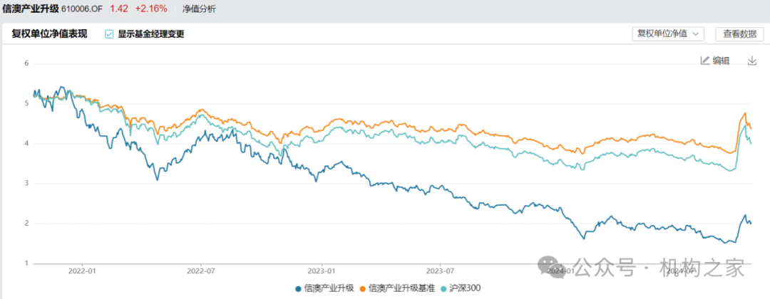 以其管理的代表性产品,“信澳产业升级”来看,该基金近三年以来持续大幅下跌,即使是在近期股市大涨以后,该基金2024年的收益依然为-15.43%,业绩大幅跑输其业绩基准和沪深300指数。