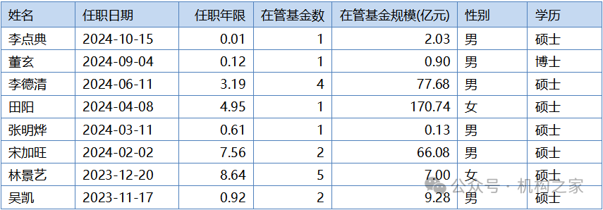 新聘任的8位基金经理中,李点典、董玄、张明烨、吴凯四人管理产品的年限均不足一年,其中李点典、董玄参与曾国富“信澳中小盘混合”、“信澳产业优选一年持有混合”基金的共同管理,吴凯更是直接接手了曾国富在管**规模的基金“信澳成长精选混合”,直接二季度末该基金规模为7.07亿元。