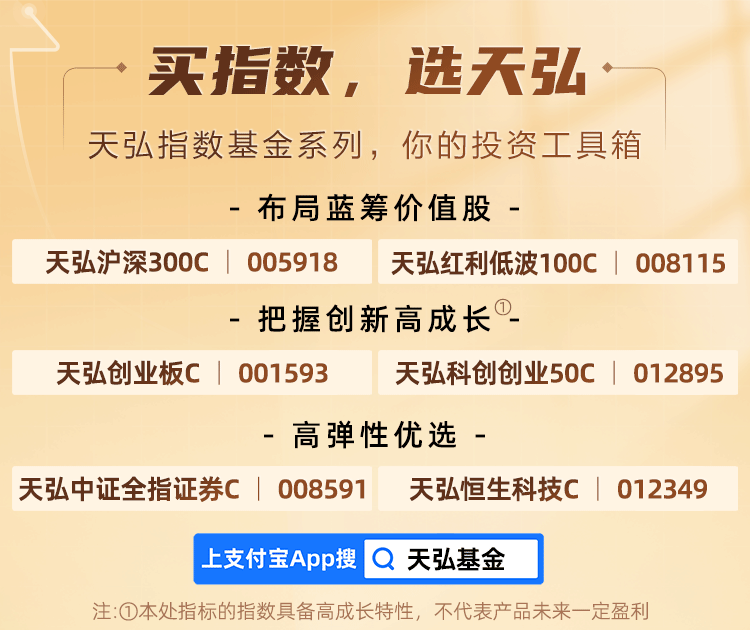 天弘基金自2015年起开始布局天弘指数基金系列,目前已形成了87只权益指数基金的产品矩阵,涵盖宽基、行业、主题、策略和跨境指数等各个方面,产品全,价值成长一键打包;费率低,省到即是赚到便宜买指数;跟踪误差小,紧抓市场反弹机遇。天弘的工具箱越来越丰富,也得到了投资者的广泛认可,目前天弘指数基金系列用户数超过3000万人。想快速跟上行情,可以关注天弘指数基金。