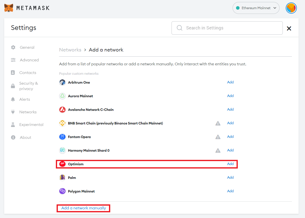 步骤 2:有 2 种方法将 Optimi** 网络添加到 MetaMask。